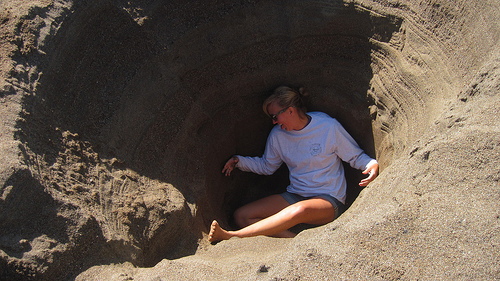 So you dutifully start digging, but pretty soon you notice that you’re not out of the hole. So you try digging faster and faster. But you’re still in the hole. So you try big shovelfuls, or little ones, or throwing the dirt far away or not. But still you are in the hole. All this effort and all this work, and oddly enough the hole has just gotten bigger and bigger and bigger. Isn’t that your experience? So you come to see me thinking, “Maybe he has a really huge shovel—a gold-plated steam shovel.” Well, I don’t. And even if I did I wouldn’t use it, because digging is not a way out of the hole—digging is what makes holes. So maybe the whole agenda is hopeless—you can’t dig your way out, that just digs you in.’